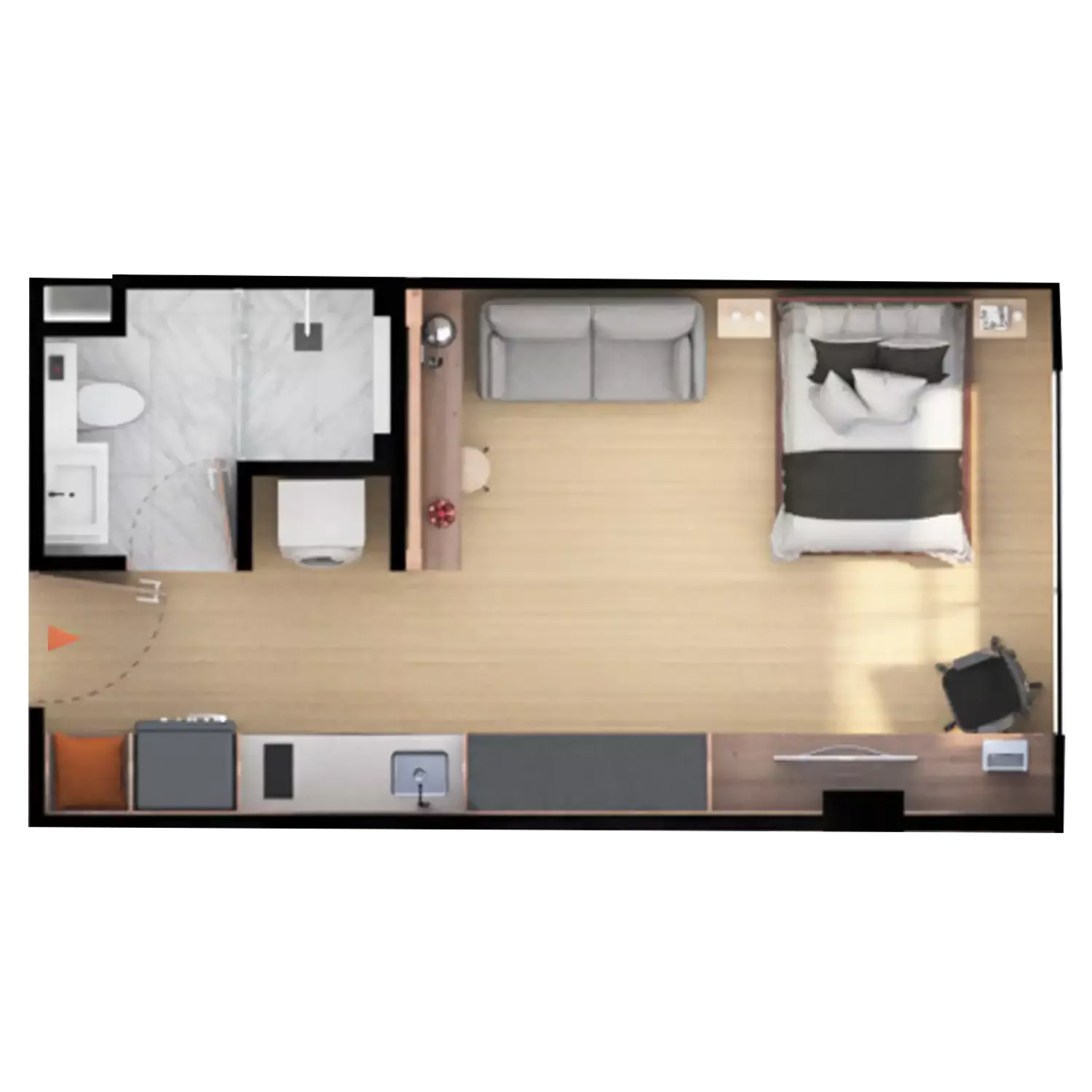 Observa el recorrido virtual de nuestro apartamento modelo de 29m² aquí: